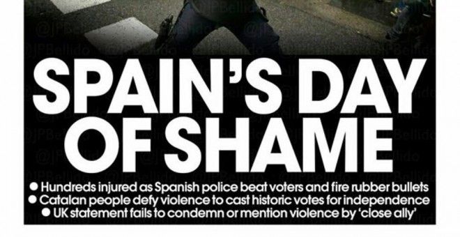 En Cataluña no hemos tenido un Bloody Sunday como tal, pero también ha habido sangre. Y no descartemos una posible desgracia en el futuro. El periódico escocés The National se acerca en la portada de ayer lunes: "Spain's day of shame". Y es que el clima de violencia que se respira en Cataluña —y en España, donde uno escucha todo tipo de cosas...— no es nada positivo. Vamos a más. Más vale que pongamos el freno, reculemos y reflexionemos. La actuación de la Generalitat y del gobierno de Puigdemont es un auténtico despropósito que viene a responder a otro despropósito por parte del Reino de España: el ninguneo constante y durante una década a las reivindicaciones del pueblo catalán, hechas realidad en las urnas y en las calles. O se sientan o esto va a acabar muy mal.