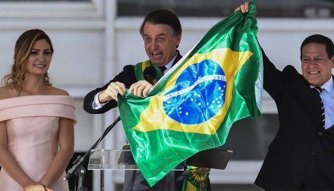 Al más puro estilo de la ultraderecha, Jair Bolsonaro se enfundó una enorme banda con los colores de Brasil para desplegar un discurso duro, reaccionario y sin complejos en su investidura como presidente del Gobierno.