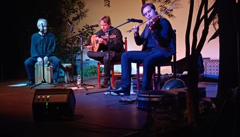 Los instrumentos que escuchamos en la noche del pasado viernes, nos hablaron en leguas antiguas como el oud árabe interpretado por Camilo padre, y el sarod hindú; y el bouzuqui griego, el saz turco, y el buzuk sirio interpretado por Camilo hijo, con ello fusionaron las fronteras y nos abrieron la imaginación de los sentidos, por viajes de aromas que llegan a Andalucía y reposan de ese viaje, con el excelente rasgueo de la guitarra española que tanto ama Camilo y que nos ubica como nadie en Jerez, dando un magistral broche de oro con la interpretación de la música del maestro Paco de Lucía que según nuestro Camilo, fue el responsable de su amor por el flamenco.