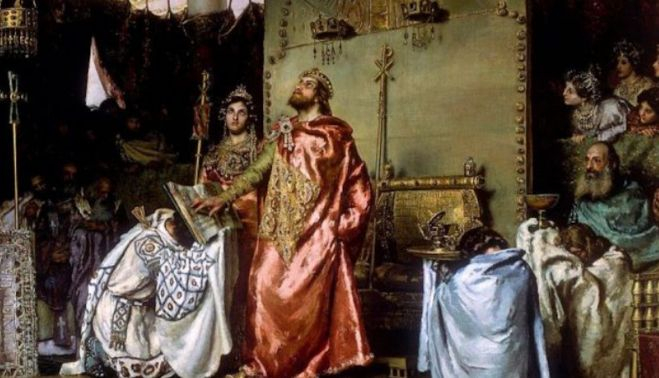 La “re-conquista” tiene más interés que un préstamo a largo plazo. A largo plazo fue y a más largo le siguen sacando réditos a un error, a un gran engaño como han demostrado algunas decenas de historiadores íntegros y se puede ver en un ligero repaso a los hechos. Para empezar sólo puede ser re-conquistado lo que se conquista dos veces. En este caso lo conquistado por segunda vez puede haber sido propiedad del conquistador, pero de forma ilegítima, pues habría una primera vez que lo deslegitima. En el caso del reino de España, los territorios conquistados entre los siglos XIII y XV, habrían sido de los conquistadores si los conquistadores hubieran sido los godos.