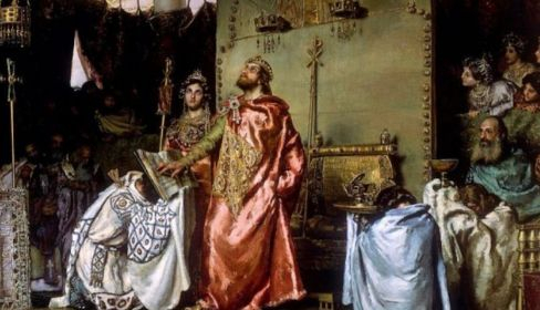 Tampoco se puede hablar de “re-“, porque las luchas, frecuentes en aquel tiempo y lugar, fueron casi tan frecuentes entre el norte y el sur como entre los propios llamados “reinos cristianos” y el propio Cid, al que veneran los adoradores de gestas, estuvo más tiempo al servicio de los reinos de Sevilla y Zaragoza que de Castilla o León. Ni puede llamarse “re-conquista” a una serie de guerras discontinuas, ocurridas desde la batalla de la Janda hasta la declaración por el Papado de la “bula de cruzada”, para la conquista de Andalucía. Es increíble la falta de lógica con que se ha venido tratando este tema desde el momento mismo que el analfabeto Alfonso III encargara la escritura de la apócrifa “Historia de España”, basada en el Poema de Fernán González, tan plagado de errores y valoraciones extemporáneas, como lo es el propio hecho de hablar de “fin de la reconquista y expulsión de los invasores”. Si hubieran existido esos “invasores” ¿Cómo los iban a echar al cabo de ochocientos años? Estarían muy ancianitos.