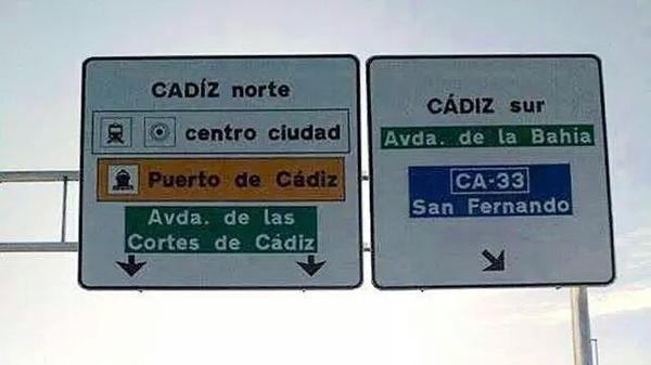 Me encontré en los carteles de la autovía con una tremenda disyuntiva: ¿Quería ir a Cádiz norte o a Cádiz sur? Esa es la nueva indicación.
