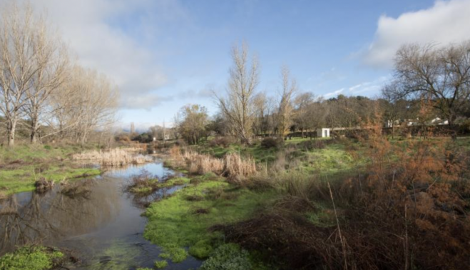 La rivera de Cala es un río que discurre por un generoso valle en Sierra Morena, entre el parque natural Sierra Norte de Sevilla y los parques Sierra de Aracena y Picos de Aroche, ya en la provincia de Huelva. Es un afluente del río Rivera de Huelva, que a su vez desemboca en el poderoso Guadalquivir por su margen derecho, muy cerca de la ciudad de Sevilla. Desde la capital hispalense, es fácil acceder hasta él justo al dejar atrás un puente que lo cruza, y que comporta un tramo de carretera hacia Almadén de la Plata. Ayer estuve allí por primera vez. Parece uno de esos lugares perfectos, que han quedado atrapados en la memoria del niño que jugaba por allí con su pelota. Apresado en el corazón de los amantes que aprovecharon la orilla para darse besos furtivos y merendar juntos mientras los sorprendía una vaca. Retenido para siempre en la caña del pescador que se servía de las crecidas del verano para agenciarse algún galón. El río Cala es uno de esos lugares eternos en los que las décadas se han tumbado al sol para contar pétalos de margarita blanca.