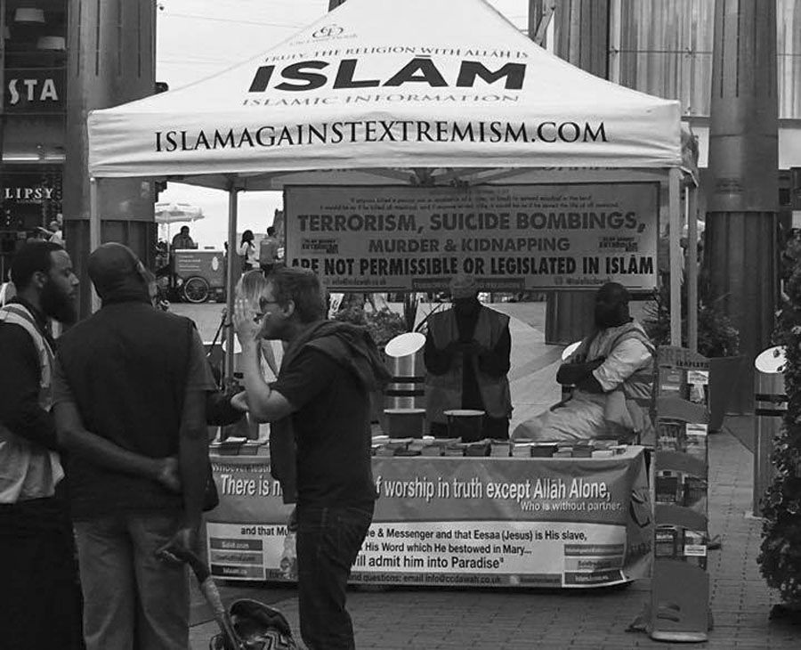"De diario, en pleno centro, se instalan dos mesas en las que se hace proselitismo del islamismo. Una ofrece el Corán en inglés, la otra defiende la separación entre islam y terrorismo".