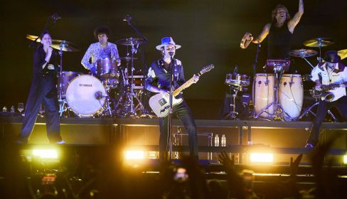 Luego marcando los minutos y los segundos en un reloj digital sobre una pantalla gigante gritamos a la vez 3, 2 1…0 y su sombrero se reflejó haciendo sombra. Las setenta mil almas lo recibimos entre aplausos y gritos. Había una comunión entre el escenario y los de abajo.