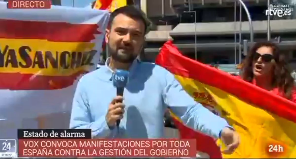 Pienso en Gabriel López. Un periodista de TVE al que han insultado y no han dejado trabajar en las manifestaciones contra el Gobierno en Madrid. Tan repugnante ha sido como lo fue antes, en Cataluña, por ejemplo, o en cualquier otro lugar. Es un periodista de informativos currando un sábado por la mañana. Y algunos le han rodeado en directo en medio de una pandemia.