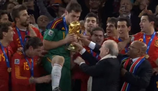 En la final, nada de peloterismo. Sangre. Los holandeses jugaron a lo que a muchos se les había olvidado que sabían jugar. Con la delicadeza de un campo de tierra inglés, clavaron las botas en el pecho a Xabi Alonso; con la clase de un torpedo de la Bundesliga, Robben se marcó dos contraataques que aquel chico de talento y poco dado al sacrificio físico, Casillas, pudo salvar. Luego, Iniesta. Navas avanza, caracolea, Cesc busca a Torres, pero todos están cansados. En un rechace mal ejecutado por Holanda -ahora Países Bajos-, vuelve a caerle al catalán para encontrar a un chavalín de Albacete, que pisó área pero parecía crecer de entre la hierba como un melón. De dónde ha salido este, debió pensar la defensa. Cuentan que lo vio dentro. Otro talento escurridizo, poco imponente, de ese colega tranquilo por el que pegas bocados, pero que no impone al otro lado en el recreo.