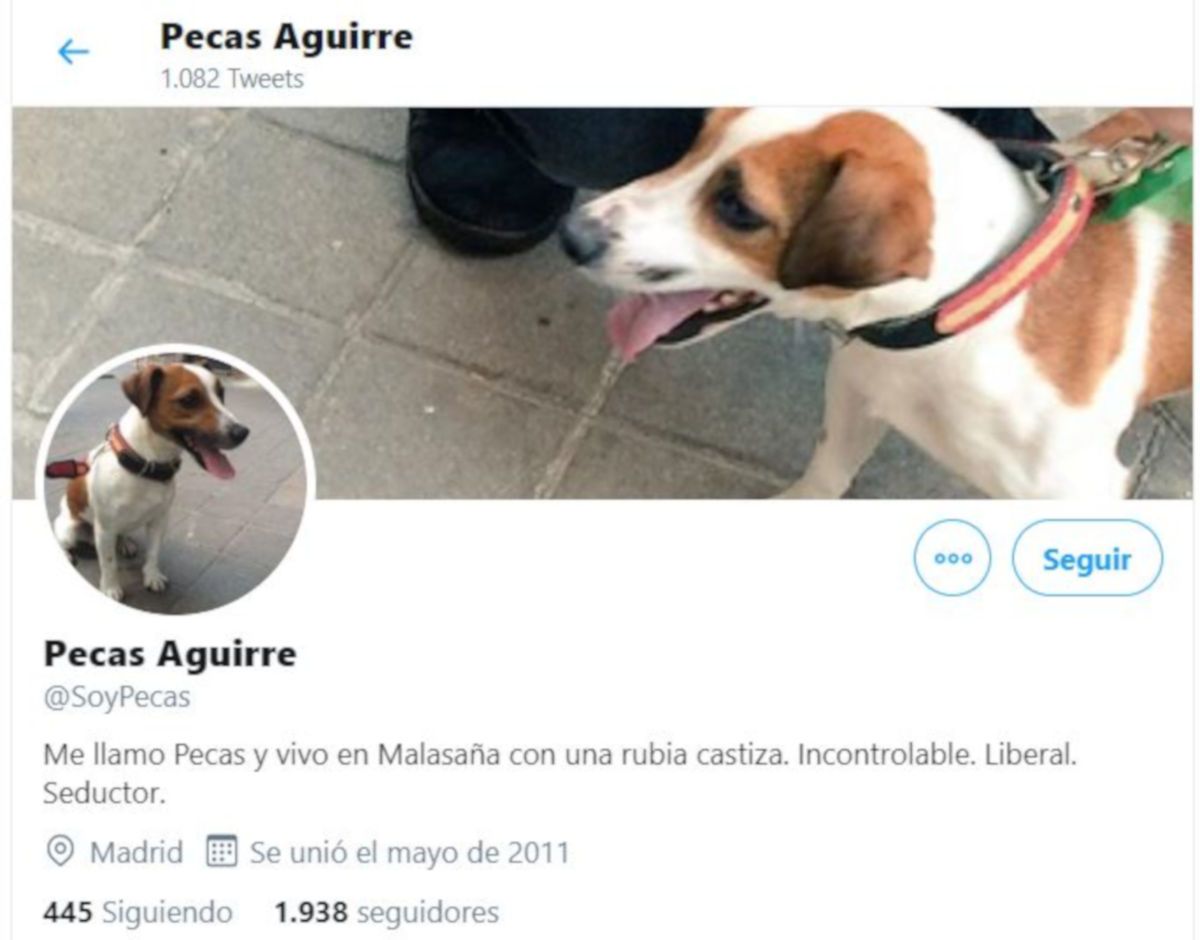 Desde ese momento IDA se convirtió en una especie de tuitera políglota transversal entre lo humano y lo canino que lo mismo llevaba la cuenta de la candidata popular que ponía voz a la de su mascota como si de una Mari Carmen y sus muñecos de las redes sociales se tratara. Pecas Aguirre se definía en la descripción de su cuenta como "incontrolable, liberal y seductor", toda una declaración de principios a la que IDA sigue siendo fiel, sobre todo en lo que toca al primero de los adjetivos.