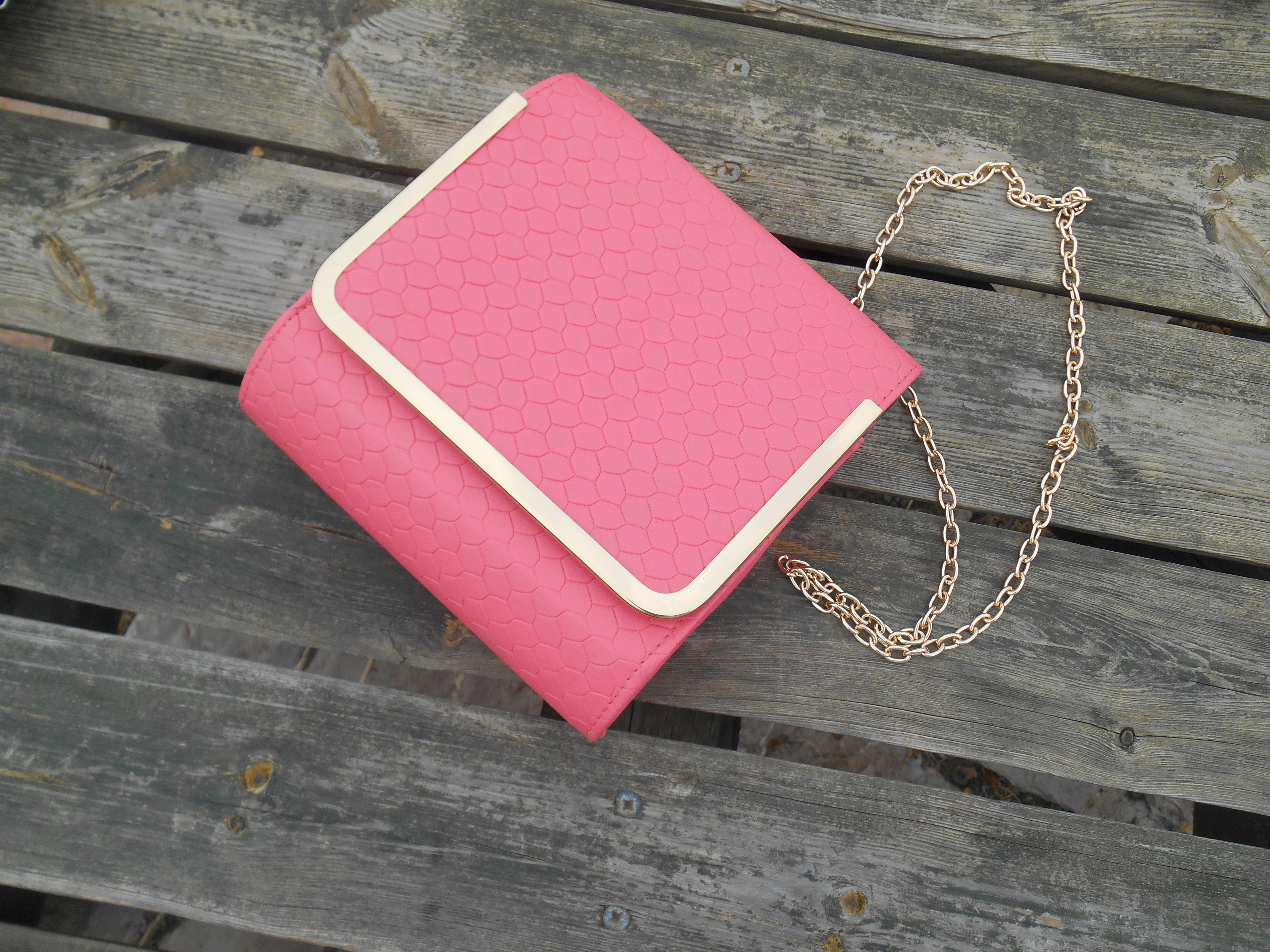 Para ello me puse un look casual. Tenía clarísimo que a los pies llevaría unas deportivas, ya que para andar tanto y para la arenilla que hay por el suelo, resulta ser lo más cómodo. Para ir fresquita me puse unos pantalones cortos vaqueros y para no ir tan sport y darle un toque más arreglado, estrené mi nueva camisa blanca oversize y éste bolsito tan mono de color coral.