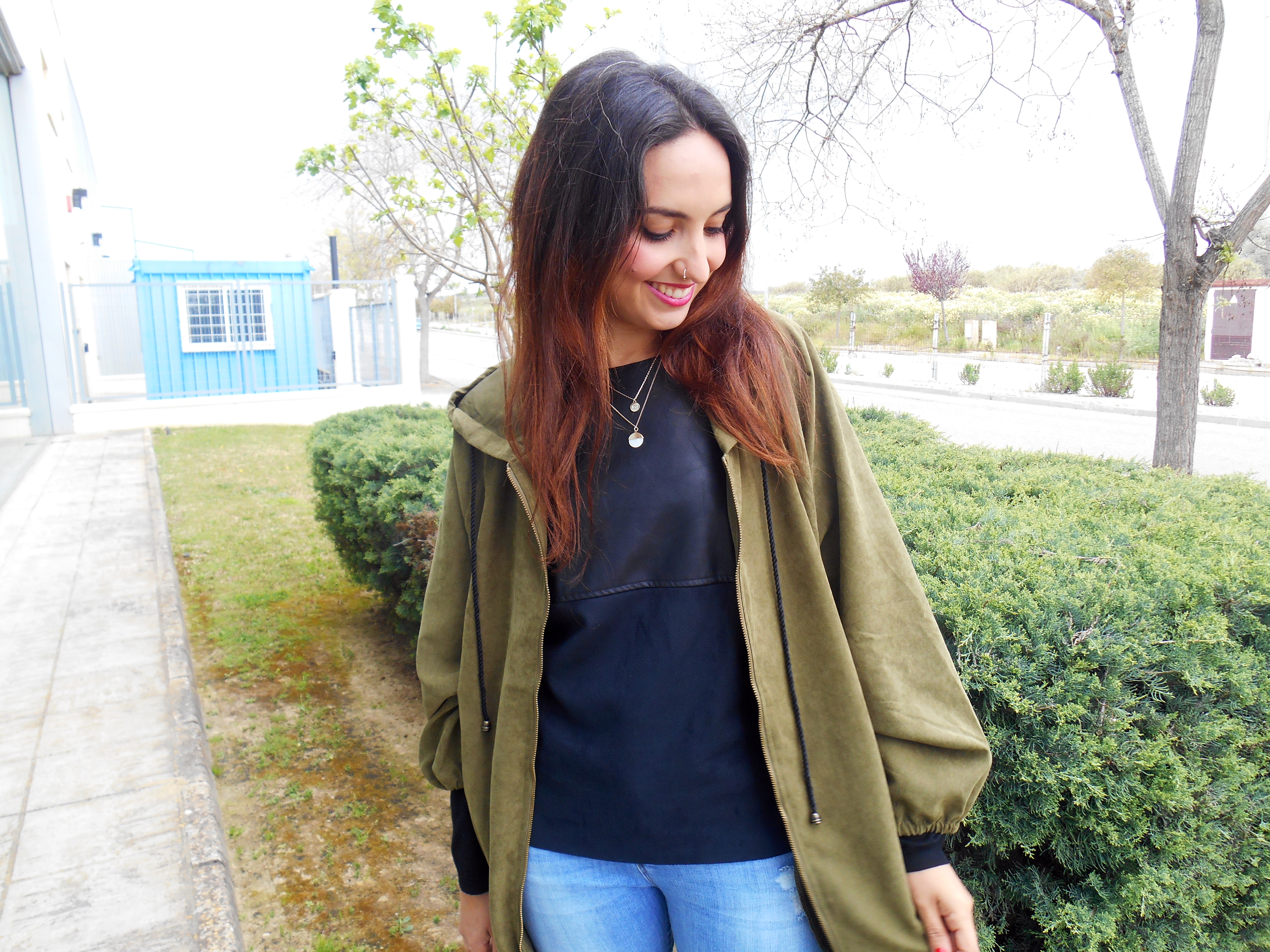 Bueno, pues para terminar con el post de hoy os comento la ropa que llevé en uno de estos días grises, en el que, aunque llueve o ventee, el estilo casual siempre me acompaña. Esta vez con una chaqueta oversize en color verde kaki, una camiseta mitad polipiel mitad antelina en color negra, mis vaqueros rotos y botines negros.