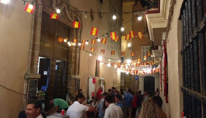 Lo segundo. Para amenizar todo, la Velada de Santiago, se hizo acompañar de música. A gusto del consumidor y a un volumen considerable. La alegría que no falte. Todo bien. Pero ustedes me van a permitir que llame la atención al doble rasero de algunos. Se celebra una Velada auspiciada por una cofradía. Y vaya, todo es respeto. Magnífico. Faltaría más. A pesar del ruido. Y de los altavoces en la calle Armengual. Estrecha como ella sola. No obstante, no hubo, ni hay, ni me temo que habrá la misma solidaridad y educación cuando en otros momentos del año, unos compañeros de una agrupación callejera -sí, de los que les gusta cantar coplas, en determinada fecha llamada Carnaval-, cantaron, cantan o cantarán sus repertorios en la misma calle Armengual. ¿Qué digo calle? en los mismos escalones de la puerta lateral de la iglesia de San Lorenzo.