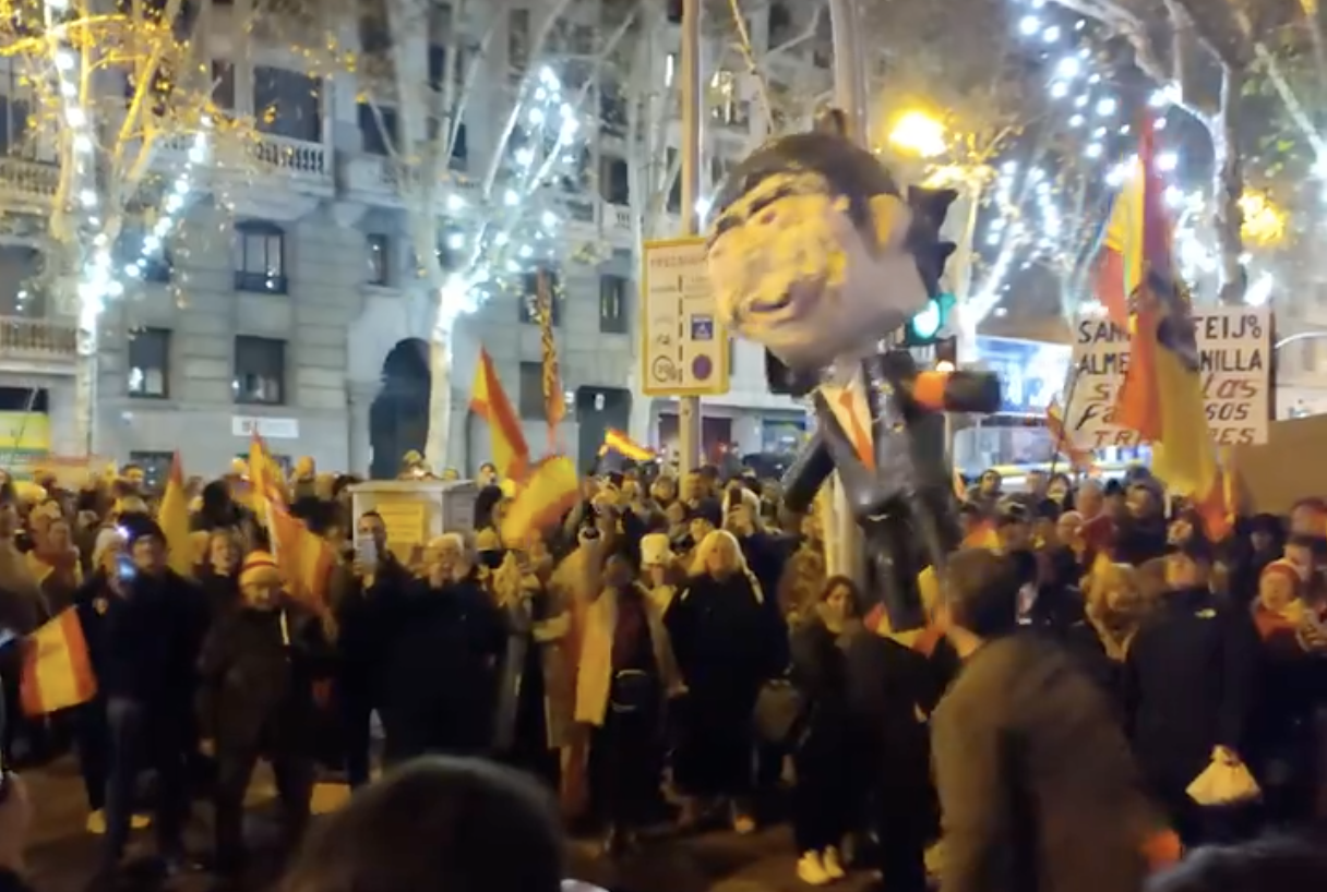 El apaleo y ahorcamiento de un muñeco de Pedro Sánchez durante la Nochevieja de protestas en la calle Ferraz, frente a la sede del PSOE, es a todas luces una línea más que se cruza en el ambiente político de crispación que vive el país. Las protestas son legítimas, las manifestaciones tienen cabida y son necesarias en una democracia como la española.