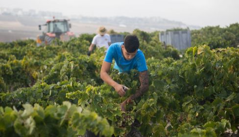 Con todo, en el Marco de Jerez –municipios de El Puerto, Sanlúcar, Chipiona, Rota, Puerto Real, Chiclana, Trebujena, Lebrija y, claro está, Jerez– todavía se movilizan entre 800 y 1.000 personas exclusivamente para las tareas de viñedo y lagares. Muchos de estos trabajadores son fijos discontinuos (temporeros, era el término de siempre), con un número creciente de mujeres dispuestas a realizar este trabajo... pero es cierto que casi se han perdido situaciones clásicas como las del estudiante que hacía la vendimia para ganarse un dinero que le venía muy bien para la universidad. Por cierto, que este año se ha evitado en el último momento una huelga en las viñas coincidiendo con el inicio de la campaña. Afortunadamente, los sindicatos y Asevi consiguieron llegar un acuerdo.