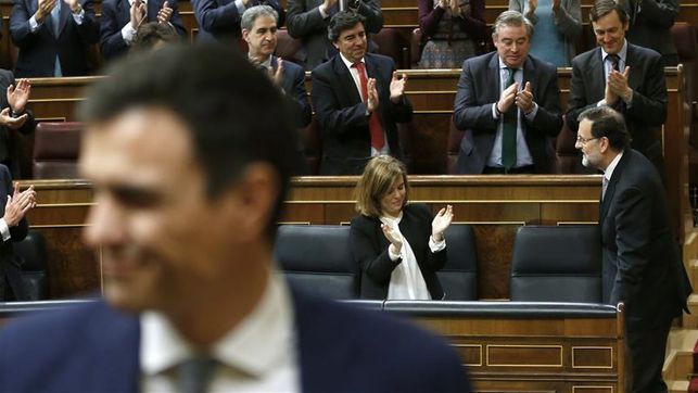 No ha dejado escapar la oportunidad y ha aprovechado su última intervención para dedicarle a Sánchez una de sus frases más profundas cuando este ya no tenía posiblidad de réplica: “No vuelva usted aquí a hacer y decir nada. Ha sido patético”. Las caras del grupo popular no expresaban el mismo optimismo que el del presidente. Aplausos atemporales a las expresiones faciales del grupo popular: Tal vez sus señorías pensaban en otra bancada de iguales proporciones que la suya y en otras formaciones en claro ascenso, fuera del hemiciclo. El discurso se ha caracterizado según las distintas fuerzas por ser una exposición muy poco ajustada a la realidad en la cual no han quedado reflejadas de una forma global y objetiva los temas principales que preocupan y afectan a la sociedad española como son la corrupción, la sanidad, la cultura, los medios, etc. Los distintos grupos de la Cámara han tenido la posibilidad de valorar ante los medios la primera intervención de Mariano Rajoy de la mañana del 24 de febrero.