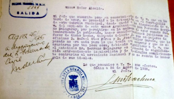 Como muestra, además de los que el ayuntamiento ha utilizado para la propuesta de revocación del nombre de la calle, baste un ejemplo. El caso  de Fernando Serrano Salagaray, administrador de la lonja municipal del mercado de la ciudad. Gaditano de 31 años en 1936, estaba casado con Elisa Valle con la que tenía dos hijos y vivía en la calle General Menacho. Era empleado municipal desde 1929,  durante la primera alcaldía de Ramón de Carranza. Primero fue contable, después, en el régimen republicano, entró en la administración del mercado. Educado en los Salesianos de Utrera y los jesuitas de El Puerto, en la década de los veinte había participado en las tertulias del café Riche, en el Mentidero, en las que se reunían jóvenes de ideología republicana. Era por tanto una persona educada y de ideas liberales que se comprometió políticamente en 1931 al  entrar en el Partido Republicano Autónomo. Más tarde militó en el radicalismo socialista, el partido mayoritario en la ciudad, y la Izquierda Republicana azañista. Un compromiso que, en 1934, le costó que fuera destituido por la gestora derechista  que sustituyó al ayuntamiento de 1931. Fue repuesto en marzo de 1936 por el ayuntamiento del Frente Popular.