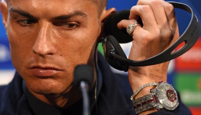 A mí me ha dado por pensarlo esta semana, mientras veía la rueda de prensa de Cristiano Ronaldo previa al partido entre la Juventus y el Manchester. El delantero se presentó vestido de negro, con la gomina de rigor y luciendo joyas por doquier. Un ostentoso anillo en el dedo meñique, pulsera de diamantes y un espectacular reloj de brillantes valorado en dos millones de euros. Han leído bien. Solo con el reloj, el bueno de Cristiano lleva dos millones encima de su muñeca. Un ejemplo de sobriedad, discreción y buen gusto como pocos se han visto y solo dignos de CR7.