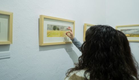 Hay mucha ternura en los paisajes de Terán, iluminados con sutileza y en los que predomina el dorado y los ocres de los campos en contraste con el verdinegro de los árboles y matorrales. Unos contrastes atenuados por el polvillo vegetal que flota en el ambiente -tan característico de esta tierra-, esa tenue calima que todo lo envuelve y armoniza en los días calurosos del verano. Pero muchas veces sobre ellos gravita un cielo grande y amenazador, cargado de sombríos presagios, que otorga a los más humildes paisajes un sentido trascendente y trágico. Conviene estar precavidos. Los mismos títulos de los cuadros -con los que se podría componer un poema- refuerzan este sentimiento: “Algo va a ocurrir”, “Lo que nos espera”, “La amenaza”, “Enclaustrado”, “Las horas sin medida”, “Los árboles de Macbeth”, etc.