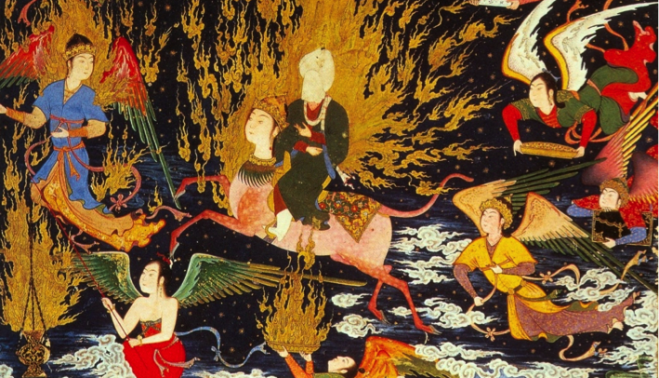 Mahoma se sintió en comunión con, o en participación de, Alá, pero nunca fue capaz de captar ninguna de sus facetas por los cinco sentidos, ni siquiera de aferrarlo como objeto del entendimiento. Lo experimentó mediante el poder único de la fe. La tradición demuestra que, pese a su imagen distorsionada en Occidente de hombre pragmático y rigorista, el profeta vivía en contacto con una dimensión fantástica y crepuscular: hablaba con los camellos y las piedras, oía a los muertos, captaba las emociones del viento y se retiraba a las cuevas y los desiertos mucho antes de su primer encuentro con el Arcángel. A la vez se ocupaba de las labores y compromisos de este mundo (familiar, político, social) y moraba en el desnudo pico de la revelación. Según el hadiz (evocado en el sura 94), unos hombres le abrieron el pecho y le sacaron algo oscuro de las tripas, en una tarde de la infancia en la que su rostro había cobrado el color de la ceniza. Desde ese día las visiones se sucederían para culminar en su ascensión (mi'raj) nocturna a los cielos a lomos de un extraño cuadrúpedo, tras haber lavado su corazón con agua bendita. Fue atravesando los cielos hasta el séptimo pero, cuando le dio alcance, Dios no reveló su imagen.