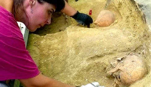 Los que trabajan dentro de la fosa, separando con mimo la tierra de los huesos —a veces me parece que los acarician con cariño y con un poco de pena—… los que trabajan dentro, digo, saben distanciarse de las cuencas vacías que sacan a la luz, del orificio de bala en la cabeza que acarician con el pincel, de la carcajada eterna de la calavera… se distancian como los médicos deben poner cierta barrera emocional con los pacientes. Pero los que visitamos la excavación de vez en cuando, no nos acostumbramos a la macabra escena. Las cuencas vacías te atrapan. Cada detalle de cada cuerpo de atrapa. Te atrapa la conjetura que surge, ¿estará dedicada esa medalla sobre la vertebra? ¿Habrá una inscripción en el anillo de esa falange? Te atrapa la historia por escribir que hay detrás de cada cuerpo descubierto. Quedas atrapado en el laberinto de emociones que emanan de la fosa… no sólo son huesos lo que vemos, nos apabullan las emociones que afloran después de ochenta años aprisionadas debajo de la tierra. Parece que no hayamos abierto una fosa, sino los corazones de esos hombres muertos.