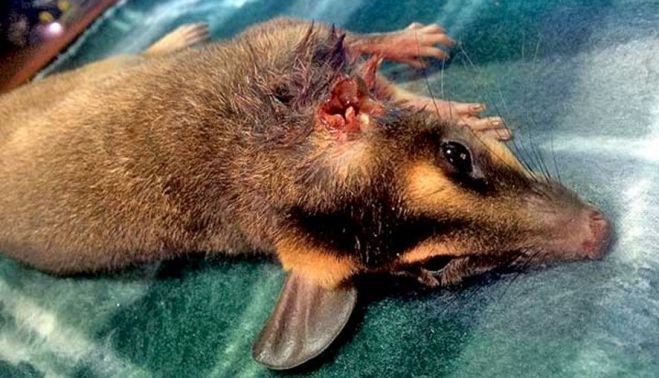 Al pequeño Carachupa le arrancaron la oreja de un bocado. Dice Yoli que pudo ser un perro, que por aquí cazan y tienen que buscarse la vida como pueden, porque si su alimentación dependiera de sus dueños humanos apenas tendrían para sobrevivir. El Carachupa es un marsupial omnívoro de América del Sur y una presa asequible para perros hambrientos. En lengua quechua significa cola pelada. Parece que le van a llamar Holyfield, aquel boxeador al que Mike Tyson arrancó un trozo de oreja con los dientes y la escupió durante un famoso combate de boxeo. Puede que sobreviva, pero va a tener serias dificultades para cazar guiándose por el oído. Veremos a ver qué pasa con él.
