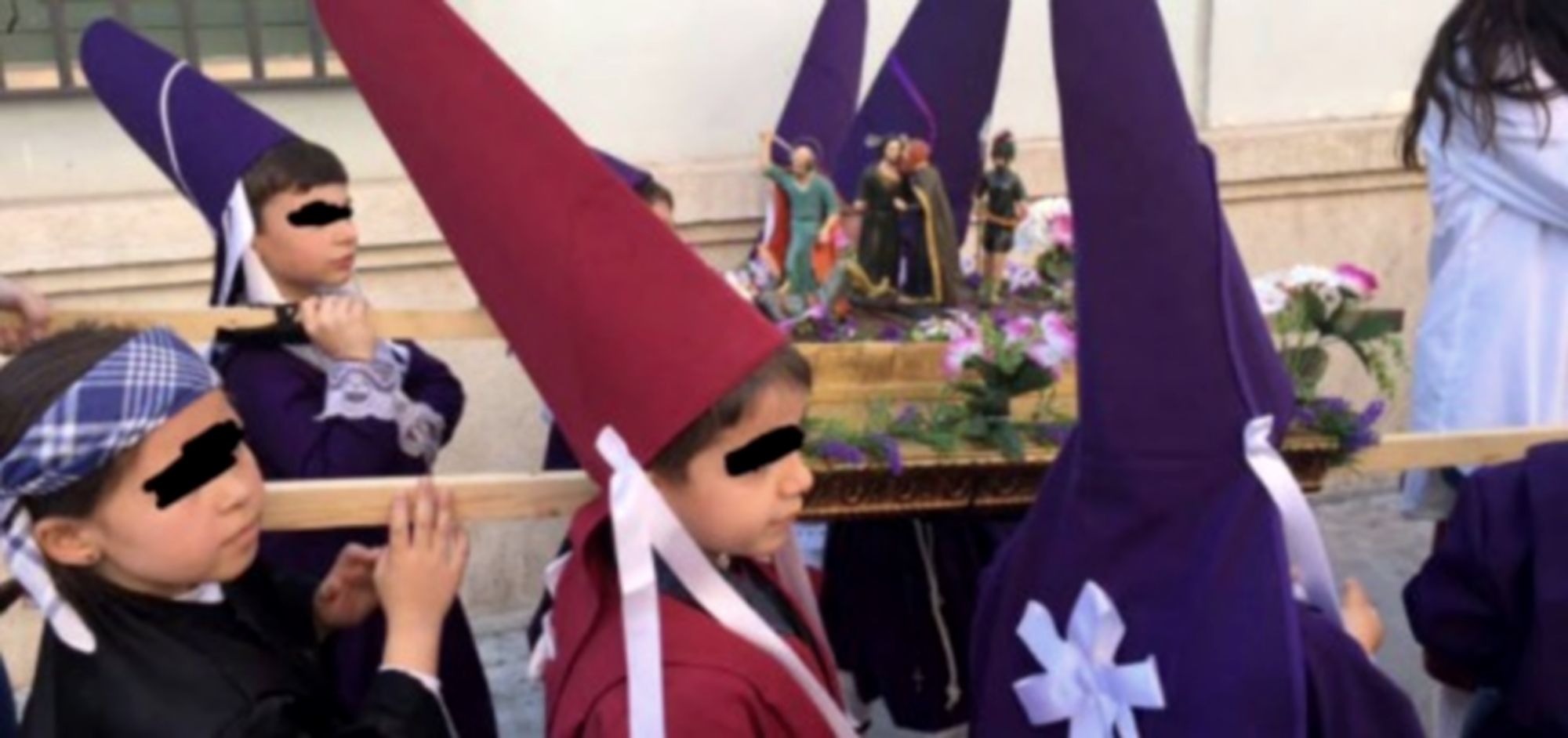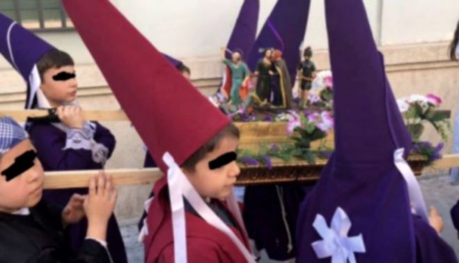 No pasa nada, qué más da, eso no hace daño… dicen padres y madres. Están también los que justifican el desmadre capillí como una forma de divulgar el patrimonio: que si el barroco o que si la imaginería. En realidad son tíos como trinquetes hablando de bordados y de la posturita de las manos de la imagen. El barroco y el estilo remordimiento español les importa un pito, solo sirven para camuflar una devoción muy cercana al fetichismo; ellos vestidos como en el Cortefiel de Chechenia y ellas de Damas Pintorescas de la Contrarreforma. El resto, esteticismo vacuo y efusiones líricas patrocinadas por Carcomín.