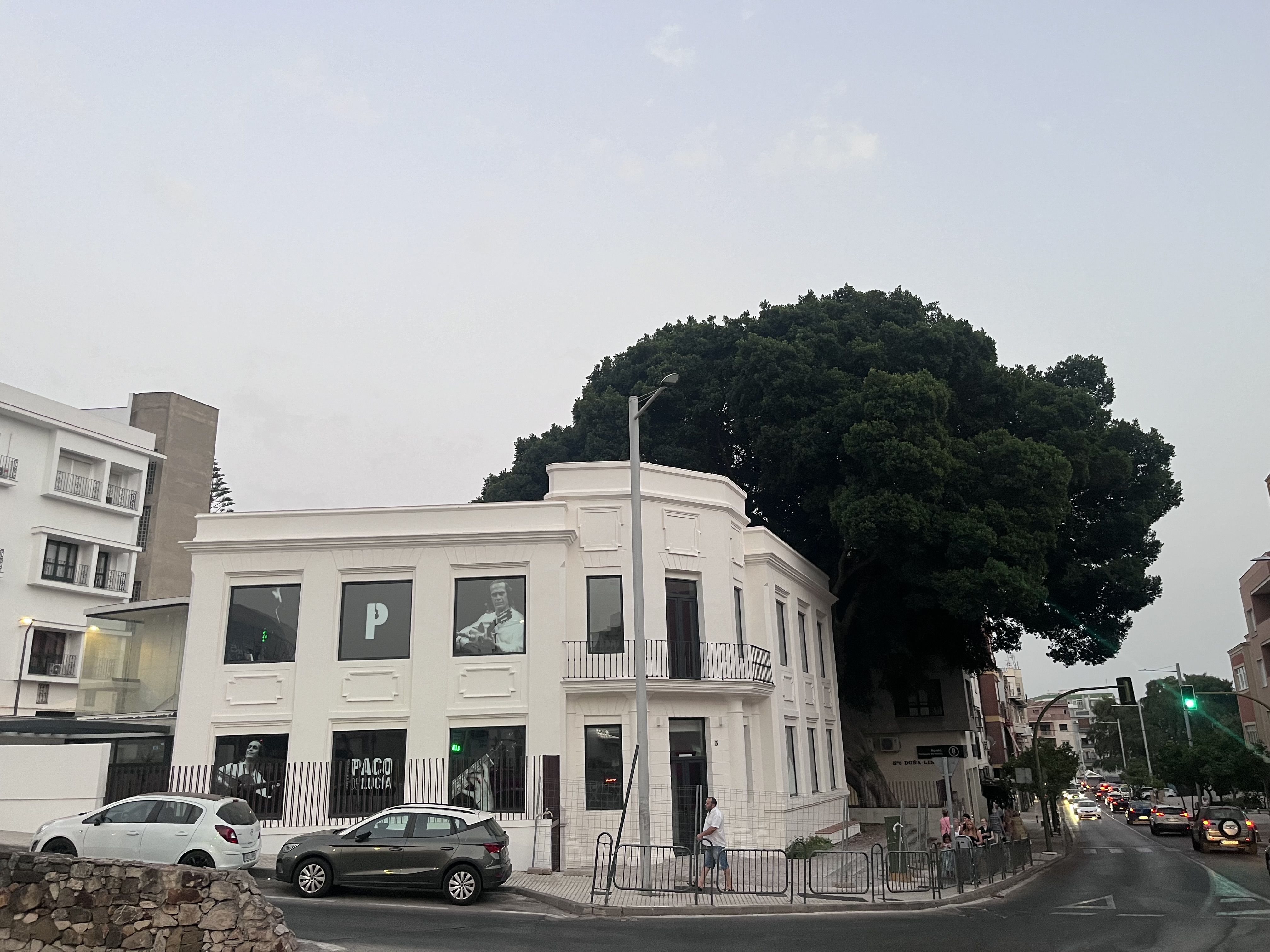 El Centro de Interpretación hace esquina en una rotonda arterial de Algeciras. A su trasera queda el viejo barrio de San Isidro, con sus cuestas y parterritos; a un lado la Plaza Andalucía y su metálica aridez; y por toda la fachada, cruza la antigua N-340 que baja al Teatro Florida y a la estación de autobuses. Pero el museo tiene además una orientación muy acertada, pues mira a Poniente, es decir, a La Fuente Nueva y a La Bajadilla, en cuyas calles se forjó el guitarrista.