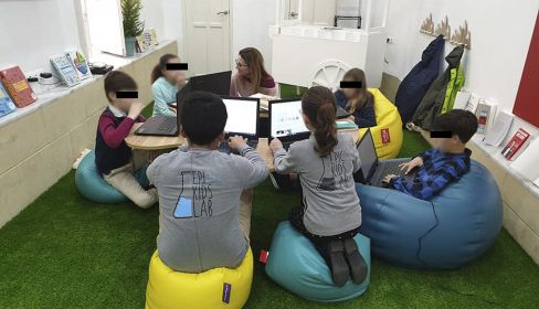 La película de terror neoliberal prosigue con la siguiente frase: «Ellos van a tomar las decisiones, pero el trabajo duro va a ser para los padres y para nosotros; estaremos todos en el proyecto». Que no falte un marcaje paternal férreo a los chicos y las chicas, no vayan a echar a volar su imaginación. La ponente sigue mostrando su lucidez: «Estoy muy sorprendida de cómo ha ido todo; hemos infravalorado a los niños: yo pensaba que iban a hacer cosas para vender pulseras, chocolates, tartas, etc. Pero todos los proyectos son tecnológicos». Otro clásico del emprendimiento cool: lo artesanal con connotaciones peyorativas, la sobrevaloración de lo tecnológico, porque claro, lo artesanal nunca puede ser rentable.