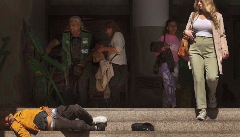 En la escalinata de la estación de autobuses de Plaza de Armas, en el centro Sevilla, como en tantos lugares, la miseria huele a fracaso y vinagre. Un hombre en otro tiempo normal, con una vida normal, duerme al sol despreocupadamente. Está a punto de caer rodando escaleras abajo, no importa a nadie, ni siquiera a él. En realidad bajó la escalera hace mucho tiempo. Ante el espectáculo, los peatones piensan, “él se lo ha buscado”, “no es asunto mío”, “bastantes problemas tengo”. Alguno masculla mientras baja con cuidado los peldaños, “seguro que es más feliz que yo”. Cuando se está inconsciente, no se es feliz, pero tampoco se sufre. En cualquier momento puede caer rodando, en cualquier instante cualquiera de nosotros también podemos caer rodando hasta el infierno.