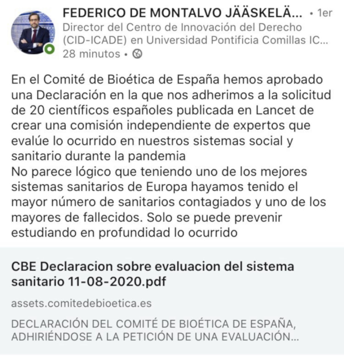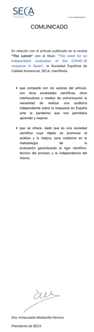 3. Asociaciones y sociedades científicas que apoyan la auditoría como SECA @CalidadAsistenc visto en twitter o el comité de bioetica de España, visto en LinkedIn
