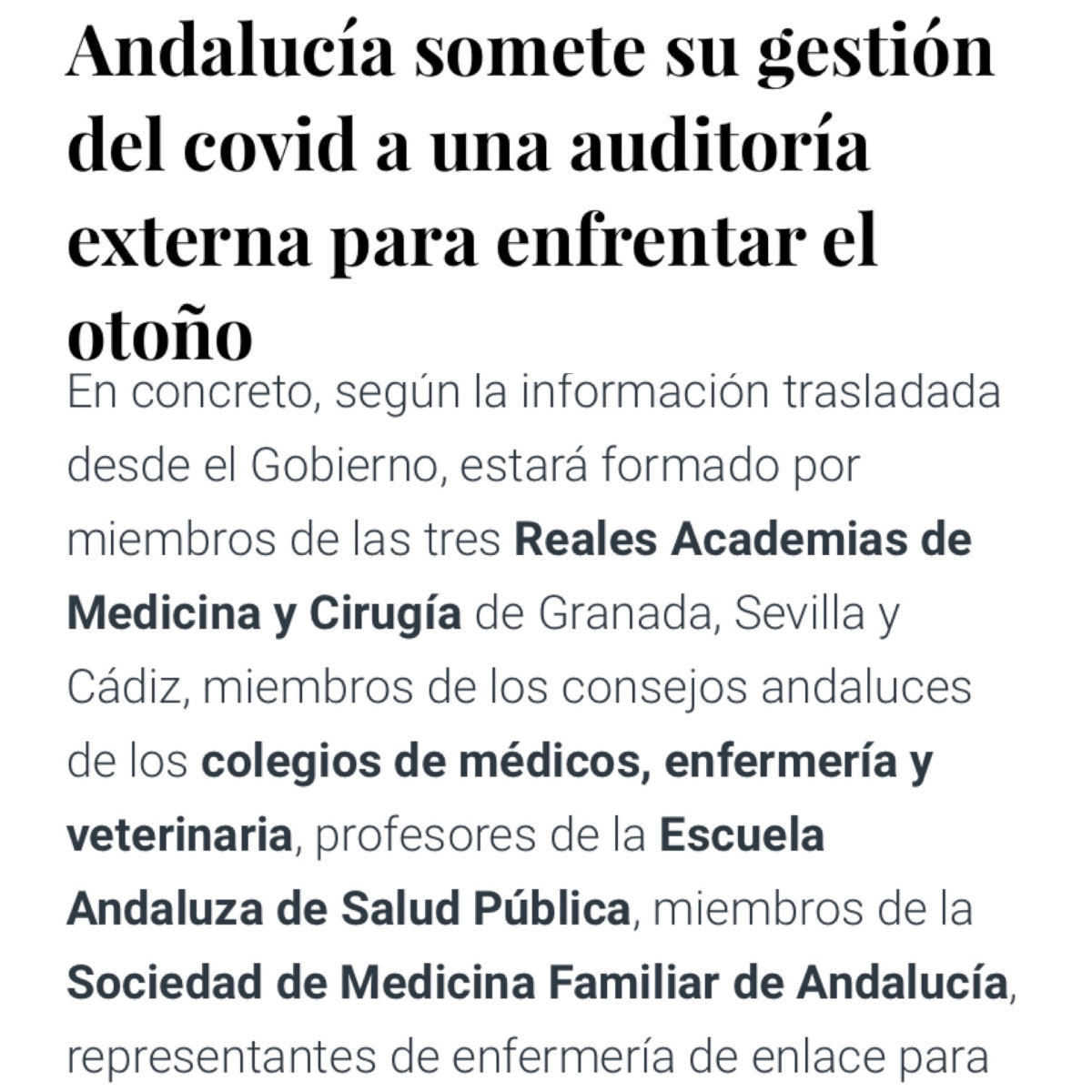Y añadimos la auditoría que Andalucia @saludand va a someter su gestión leído en twitter en @elconfidencial: