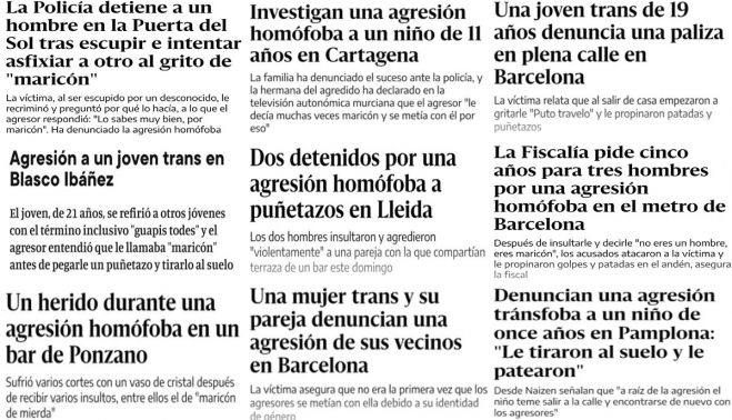 De todas formas las agresiones hacia personas LGTBI no sólo han crecido en número, sino que se han vuelto más violentas e incluso organizadas. Esto ha generado una gran alarma social por su brutalidad. Melilla, Toledo, Valencia, Vitoria, Madrid, Barcelona o el asesinato de Samuel son terribles ejemplos.