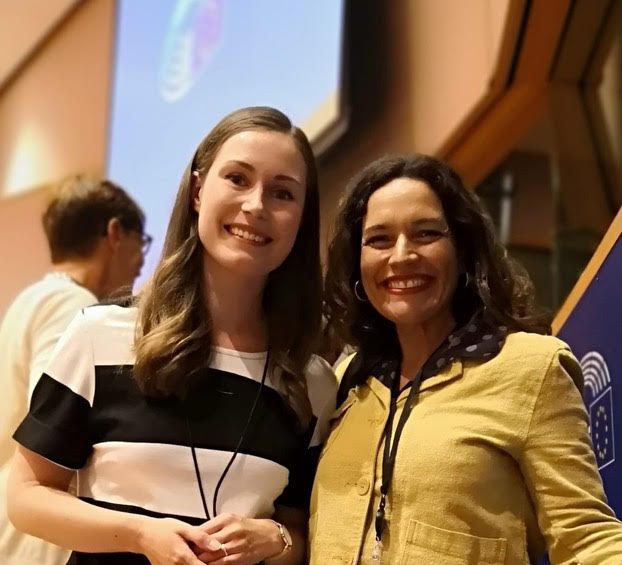 Y la eurodiputada @linagalvezmunoz explica con una foto: "Aquí con @MarinSanna en @Europarl_EN ... trabajando". Pero no me importaría irme con ella de fiesta #Sanna_Marin ¿En qué quedamos? Las personas que estamos en política tenemos que ser personas como las demás (responsables, honestas...) o ser seres de cartón piedra... o hipócritas,