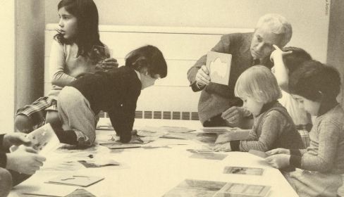 De sus trabajos para niños y de su interés por el mundo infantil surgen de forma natural sus talleres para ellos. En 1977 crea el primer laboratorio para niños en un museo, nada más y nada menos que en la Pinacoteca di Brera de Milán. Y ya en los 80 desarrolla sus talleres "Jugar con el arte" y "Jugar con la naturaleza". Munari fue también pionero en este ámbito, tanto en la idea como en su enfoque.