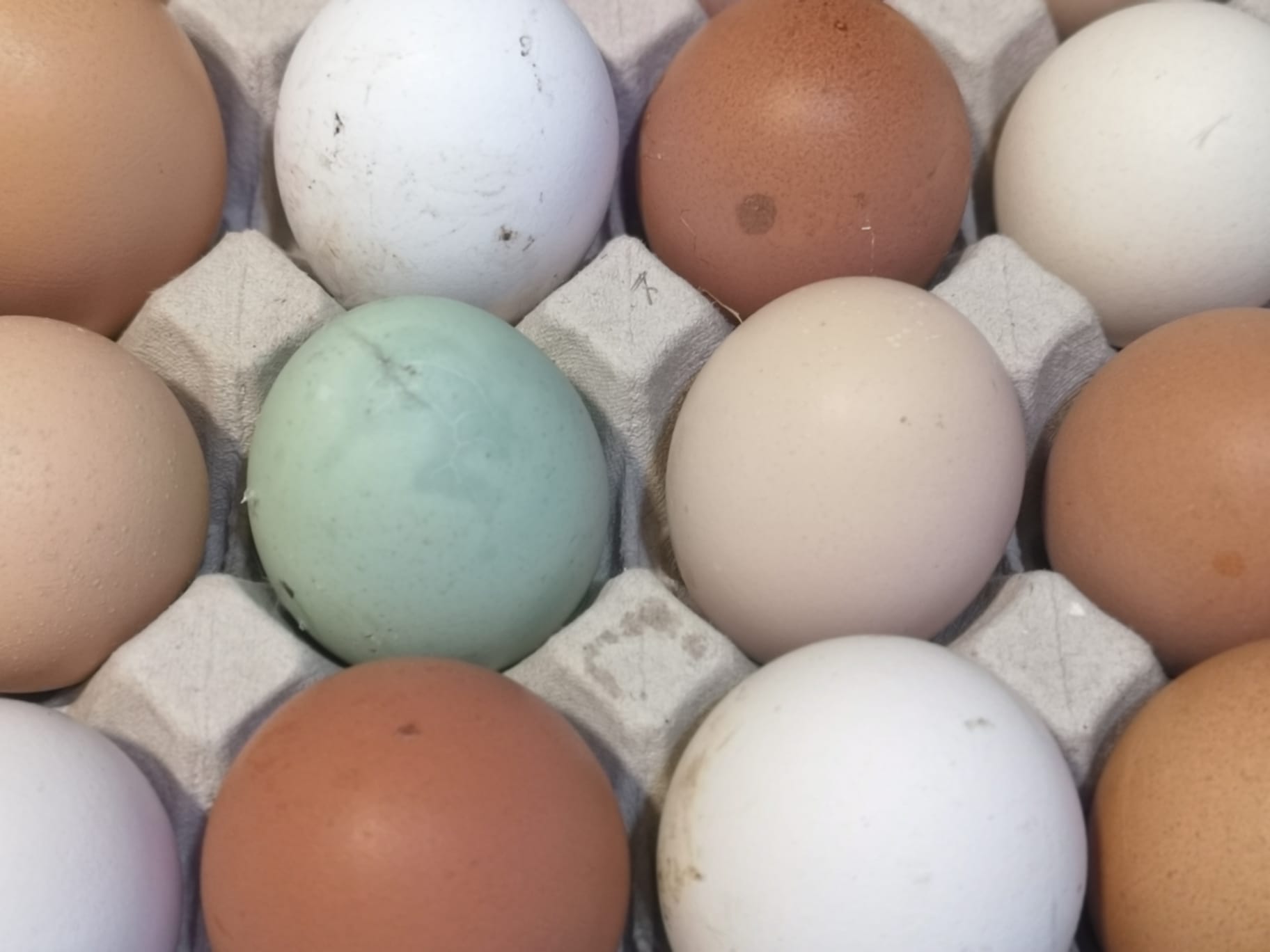 El color de la cáscara del huevo nos da una importante información del origen de la raza aviar, adaptabilidad y cultura de manejo. Las gallinas de procedencia mediterránea, como las utreranas y andaluza azul, ponen los huevos de cáscara blanca o ligeramente rosada; las de procedencia atlántica los ponen marrones y las chilenas verdes. Los de Pascua, según colores con los que se pintan. A igualdad de condiciones, dicen que por genética los huevos blancos tienen la mitad de colesterol que los marrones y la cuarta que los verdes.