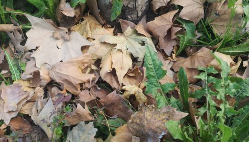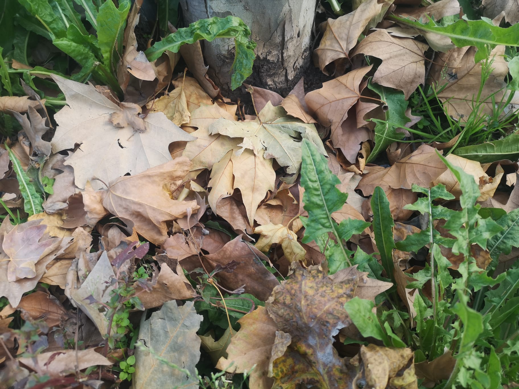 La materia de las hojas caídas proviene del carbono invisible del aire que respiramos, depurando para bien y generando suelo allá donde se depositan, mejorando la capacidad de retención de agua de lluvia y riegos de apoyo, además de crear microvida de la descomposición.