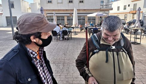Acompañado siempre de su perro, con una vara larga, va cantando su camino, ante la invidencia casi total que padece. Su ánimo por vivir es total, un buen número de bolsas higiénicas en su bolsillo, lo he conocido hoy en el quiosco Blas, los mejores calentitos o churros de la costa de Huelva, en el barrio del antiguo matadero de Isla Cristina. Muy amigo de Vicente, ambos de la Punta, y amantes de amaneceres en la Gola —con monolito acreditativo— esa que tanta hambre quitó y quita, aunque con un futuro incierto debido a la colmatación de arena, provocada por el espigón de la Punta del Moral, y a su rescate viene el cambio climático gracias al cordón dunar existente.