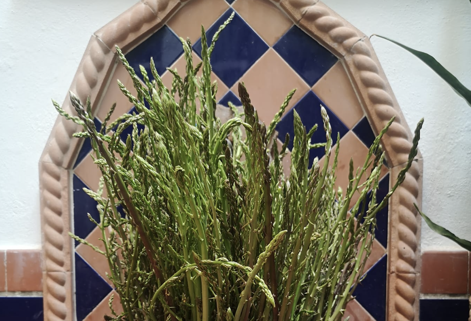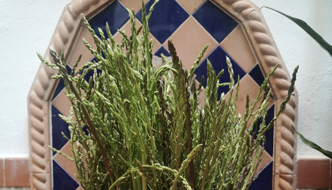 Disfruto en vida ante esparragueras silvestres en el encuentro año tras año, si tendrán espárragos ya, si estarán cogidos dejando tallo para que se hagan planta, dejando las puntas para el siguiente y ciertamente hay para todos los lugareños, habiendo llovido lo suficiente o en cambio se habrán helado, y si contaremos con suficientes huevos blancos de campo para la tortilla o revuelto. Los primeros me los como crudos en el campo y a continuación voy incorporando al manojo que sostengo en mi mano.