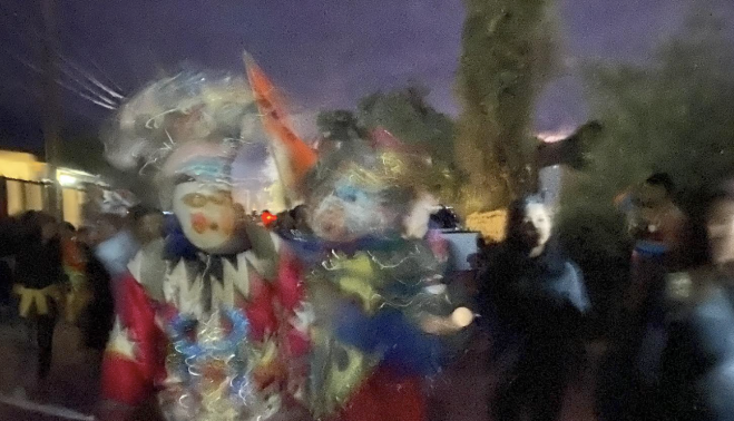 En esta misma línea, cabe destacar también la fotografía “Un mamarracho de Carnaval”. Aquí vemos algo aún más radical, pues nuestro fotógrafo nos deja ver, no la imagen nítida y fiel de lo que ocurre, sino el estado anímico que se refleja en la cámara analógica. Vemos dos hombres vestidos con sus trajes de carnaval, pero no solo eso, pues estos aparecen mediante un contorno difuso que se logra con la última luz del día y el aparecer de la noche. Nuevamente, sin querer intervenir, Pablo muestra con su cámara un estado anímico del momento, y no tanto una “cosa” que debe ser fotografiada. Hacer aparecer la imagen es también dejar que se muestre la situación, sea un sentimiento, estado anímico o cosa. O dicho de otro modo, ser fiel a la imagen no implica siempre fotografiar cosas.