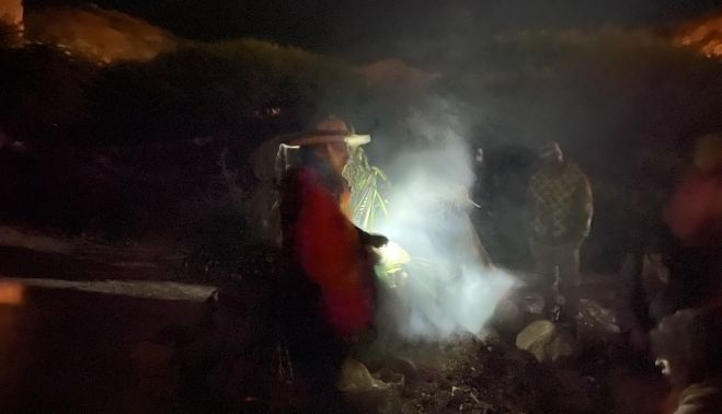 Comimos, bebimos. Comenzaron los círculos de coplas con caja. Círculos inacabables que rescataban en mi memoria las danzas de los monjes derwiches; los pasos cortos del Carnaval de Binche, en Bélgica. Me decoraron con talco. A cada paso volvía a disfrutar de la conversación interesante de una nueva persona; regresaba a la conversación de mis nuevas amigas. Comenzó la procesión hacia el mojón donde se enterraría el Carnaval y se realizaría el ritual a la Pachamama. El mojón fue levantado, piedra a piedra; abierta la Tierra se extrajeron las ofrendas que se le rindieron para luego enterrar nuevas, todo entre cantos de coplas con caja durante una danza ritual en círculo, alrededor del mojón.