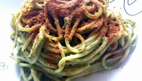 El pesto es una receta italiana de una salsa hecha con albahaca, queso parmesano, queso de oveja, piñones, ajo y aceite de oliva virgen extra y sal. Una mezcla sabrosa y con una textura jugosa que encuentra el favor de muchísimos paladares en el mundo. Confieso, la que escribe es una adicta y siempre está experimentando con nuevas combinaciones, además es un plato muy rápido de preparar y te soluciona un almuerzo en pocos minutos.