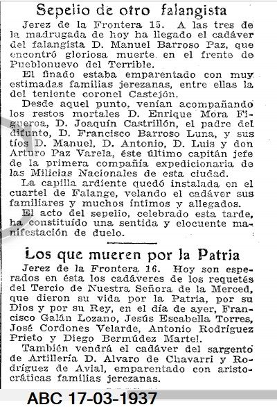 El periódico conservador de la ciudad, el Diario de Jerez, se ocupó de destacar esta noticia (hace 11 años atrás) en la que un concejal socialista pide perdón por haberse atrevido a proponer la supresión de la calle Comandante Paz Varela.