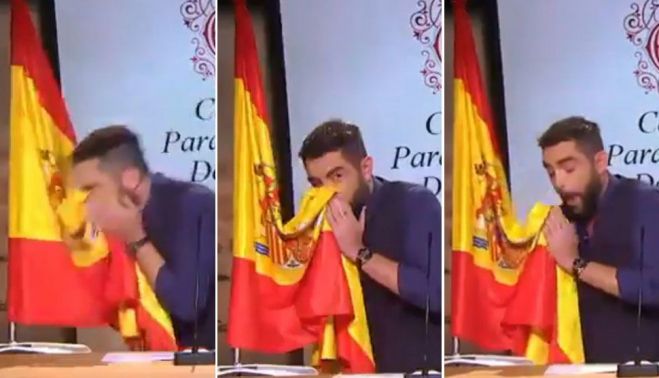 Cuando parecía que el despido de Itziar Castro de OT iba a ser el más sonado de la semana llegó Dani Mateo y lo eclipsó. El viernes pasado una clínica oftalmológica de la que el humorista era imagen anunció que retiraba toda la publicidad en la que aparecía el colaborador de El Intermedio. El motivo aparente del despido era que durante un sketch el acompañante más fiel de Wyoming se sonó los mocos con la bandera de España. Esto es algo que la clínica dice no compartir porque defiende la libertad de expresión “pero siempre dentro del marco legal vigente” y la empresa está “claramente del lado de nuestra Constitución”.