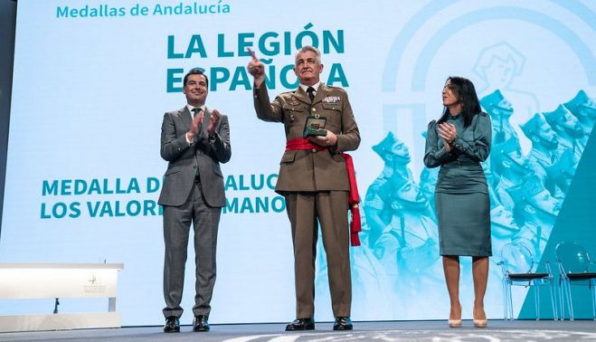 Así que ahora el bisoño presidente de la Junta de Andalucía se deja caer, justo en el 28 de febrero, el Día de Andalucía, con esta lamentable guinda: Medalla de Andalucía a la Legión "por sus valores humanos". Efectivamente, una alta distinción que la casta política de la derecha clásica de Andalucía (que no del pueblo andaluz) concede a un "cuerpo expedicionario" creado por el simpático Millán Astray, el famoso militar golpista que acuñó para siempre la expresión "viva la muerte"... algo totalmente opuesto, en realidad, a la cultura de Andalucía.