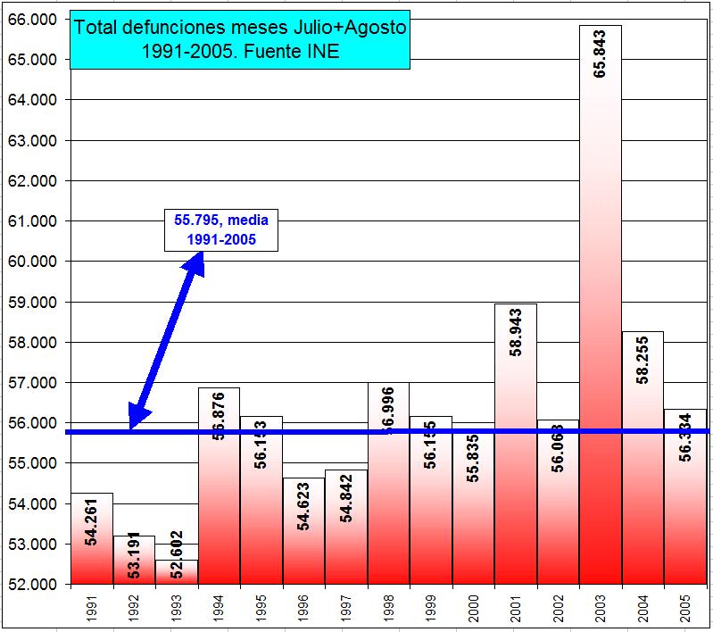 Pero aquí no. Aquí nunca pasa nada. Cuando en el verano de 2003 Europa y todo el hemisferio norte es víctima de la ola de calor más intensa y prolongada en el tiempo de los últimos 500 años, los gobiernos de aquel entonces adoptan en Francia, Alemania, Inglaterra, Portugal y otros países de nuestro entorno numerosas medidas de protección de grupos de riesgo que se encuentran expuestos a los efectos perniciosos —en muchos casos, letales— de las altas temperaturas. París, Londres, Berlín y Roma decretan los estados de emergencia sanitaria preceptivos que permiten controlar la salud de cientos de miles de personas haciéndolas objeto de un seguimiento especial por parte de los sistemas sanitarios públicos y decenas de miles de ellas, fundamentalmente ancianos y enfermos, son ingresadas por orden expresa de sus autoridades sanitarias en centros hospitalarios dotados con equipos de aire acondicionado y regulación de temperatura. En algunos casos, los gobiernos llegan a poner a disposición de los ciudadanos infraestructuras públicas y privadas (edificios ministeriales, polideportivos, bibliotecas, grandes superficies, centros comerciales...) para hacer frente a la mortal ola de calor. A pesar de todo ello, y de haber salvado con estas medidas preventivas miles de vidas, los gobiernos europeos admiten un elevado incremento por encima de la media de la mortalidad causada por la ola de calor: 14.802 muertes en Francia, 4.175 en Italia, 1.316 en Portugal, 2.045 en Gran Bretaña...