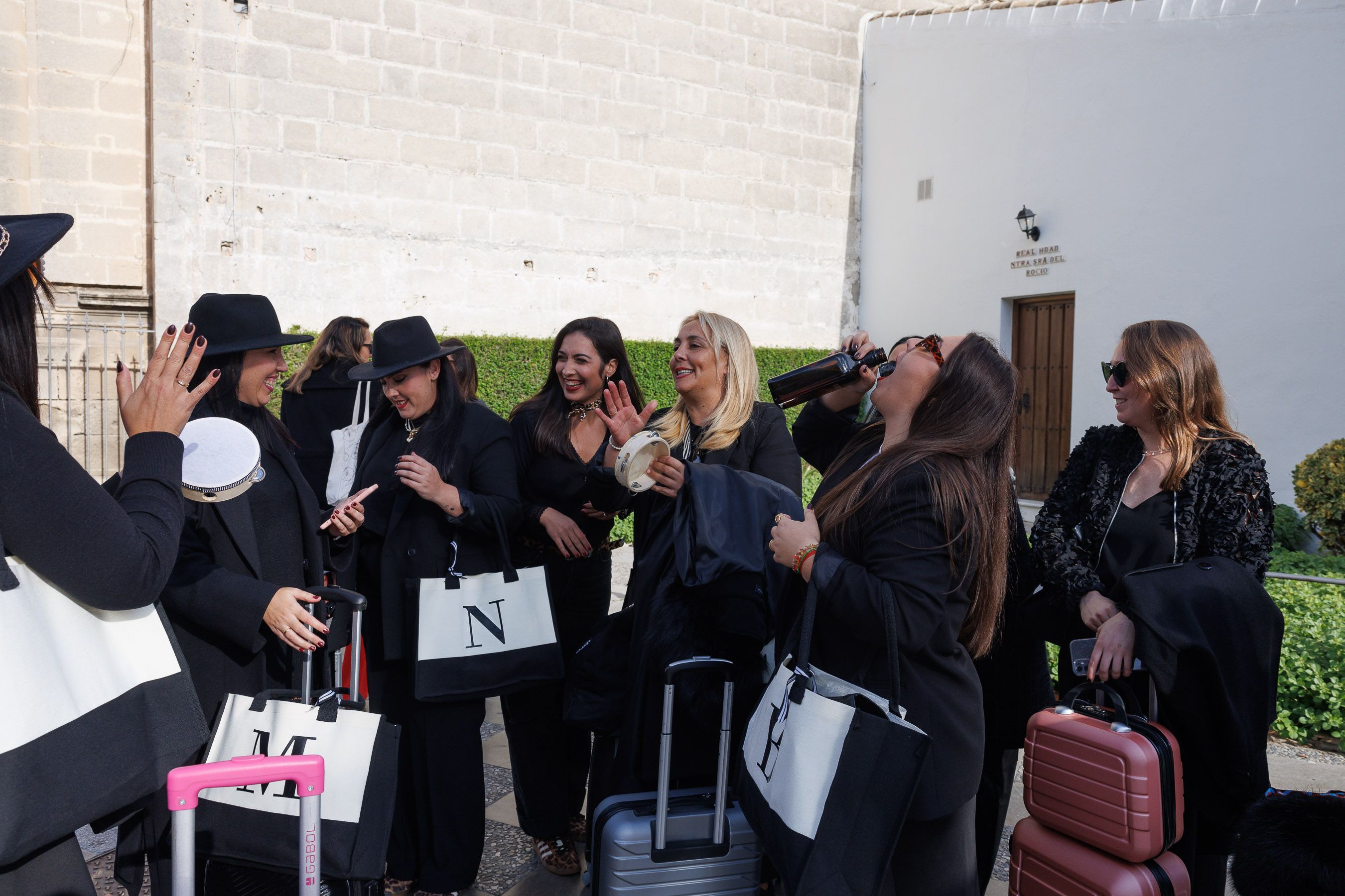 Este viernes pasadas las dos de la tarde hay una enorme primada —ellas dicen que son todas primas— recién desembarcadas en Jerez directamente desde Sevilla. No llevan la típica botella de anís que recordábamos, sino que en este caso utilizan como improvisado instrumento una botella de Amaretto, un licor dulce originario de Saronno, al norte de Italia. Ríanse ahora de la marca sevillana del Gambrinus.
