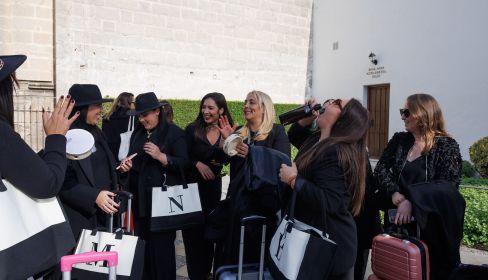 Este viernes pasadas las dos de la tarde hay una enorme primada —ellas dicen que son todas primas— recién desembarcadas en Jerez directamente desde Sevilla. No llevan la típica botella de anís que recordábamos, sino que en este caso utilizan como improvisado instrumento una botella de Amaretto, un licor dulce originario de Saronno, al norte de Italia. Ríanse ahora de la marca sevillana del Gambrinus.