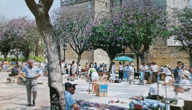 A raíz de una publicación estos días en Cosas jerezanas que se han perdido con el tiempo, un grupo de Facebook que es un arca impagable de cosas familiares —allí encontré una vez a mi abuelo Manolo, ese que les decía de las novelitas, en una foto en un tabanco de la plaza San Lucas—, me ha vuelto a la memoria el rastrillo de la Alameda Vieja. La foto que sube el usuario Zacarías Dorado al citado grupo —y que ilustra esta pieza— representa todo aquello que les contaba sobre nuestro popular rastrillo (o rastro, como también le llamaban).