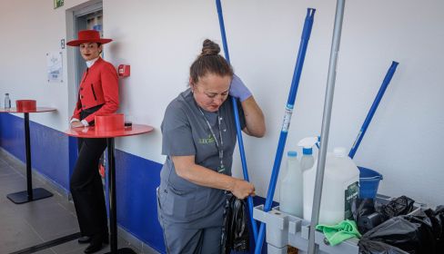 Ante la amplia sonrisa de una chica Tío Pepe, la amable señora de la limpieza termina de pasar la escoba por el pasillo de las mezzaninas —donde se mueve, junto al paddock y la torre, la teórica creme de la creme del público asistente—. De los porteadores de neveras con refrigerios por el duro asfalto a las delicias del rooftop del VIP Village. Otras dos jóvenes blindan los accesos para que los que crucen esa línea de meta psicológica sean los que llevan el color adecuado en sus tarjetas. Uno puede pensar que tiene un pase de la leche y no pasar de la croqueta más aceitosa una vez alcanzados los boxes. Nadie sabe bien cuál es el mejor pase, el color que abre todos los accesos. El violeta, a diferencia del billete de 500 euros, sirve de poco aquí. El marrón, ya saben. Hay tarjetas gold, negras, más oscuras, más brillantes, con la cinta dorada, con diferentes logos… muchos de los invitados llevan varios en el cuello, luciendo poderío…