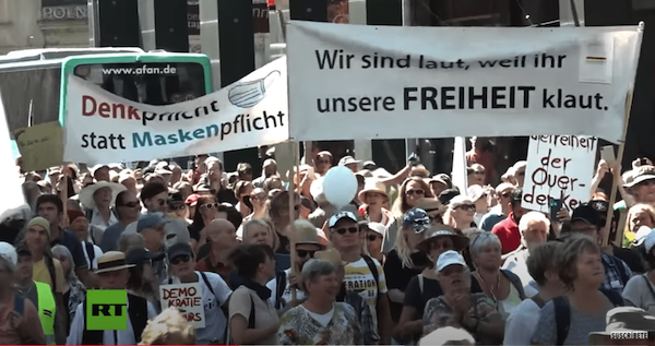 Quizá con más claridad que nunca hemos podido ver en las calles lo mismo que vemos en esa realidad de impulsos, y eléctricos, que se llama Twitter. 20.000 personas venidas desde muchos rincones de Alemania, no pocos desde Stuttgart, para protestar contra la virocracia, según ellos mismos. Reclaman haber sido más de un millón, como en aquellos tiempos de la Plaza de Oriente, pero no ha sido. Y a diferencia, también, de los cayetanos, la diversidad de esa microsociedad que se ha manifestado en Berlín es amplia, a la vez que preocupante. Han sido 20.000, pero una manifestación es solo la punta del iceberg. Que salga la jefa del SPD a llamarlos idiotas en Twitter no va a cambiar las cosas, y en un punto la iguala con uno de los manifestantes, según él, maestro jubilado, que cuando le preguntan si no le molesta estar en la misma calle con los nazis responde que les hacen falta los estúpidos. Luego, claro, él mismo se ofende si le llaman idiota.