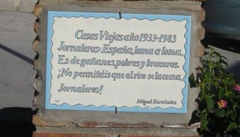 Los años han seguido pasando, casi veinte, y durante ellos la escultura reapareció de las oscuridades y se colocó en la plaza de los Jornaleros. Un lugar alejado del centro de la población y hacia donde parece hay la intención de desplazar la memoria de lo ocurrido en 1933. Siempre hay quien quiere construir la historia y la memoria de un pueblo a su gusto. Primero la escultura fue colocada sin ningún elemento identificativo. Como una especie de amasijo de hierros sobre una base de ladrillos. Después, tras diversas peticiones, apareció algo semejante a una copia del azulejo original. Eso sí, ninguneando la firma de quien había colocado la escultura en 1983. Así, como iniciativa anónima, permanece hasta hoy.